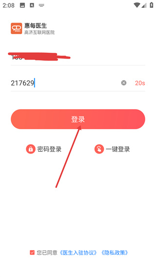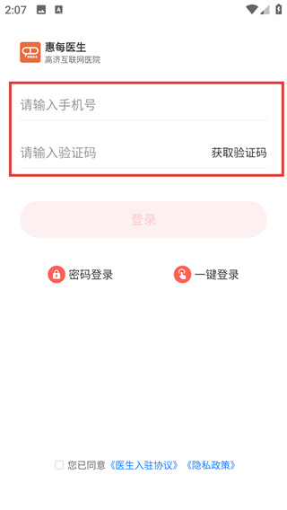 1、在【惠每醫(yī)生】登錄頁(yè),輸入手機(jī)號(hào),獲取手機(jī)驗(yàn)證碼。