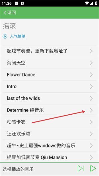 1、在搖滾音樂(lè)列表中找到《Determine 純音樂(lè)》,點(diǎn)擊進(jìn)入音樂(lè)詳情頁(yè)面。