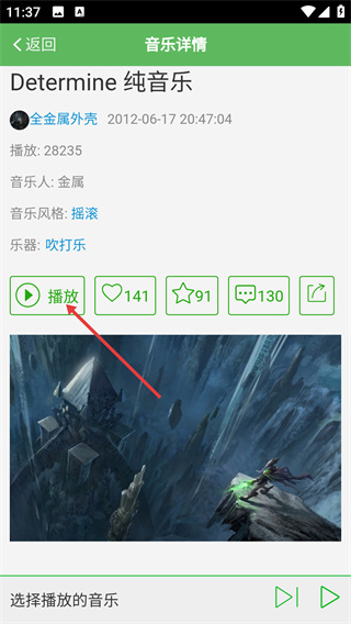 2、在音樂(lè)詳情頁(yè)面點(diǎn)擊【播放】按鈕,開(kāi)始播放該音樂(lè)。
