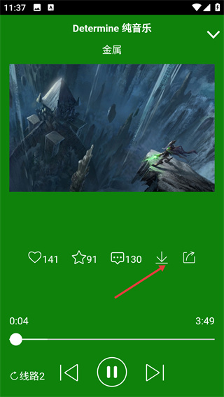 4、在全屏播放界面點(diǎn)擊下載圖標(biāo),完成音樂(lè)的下載操作。