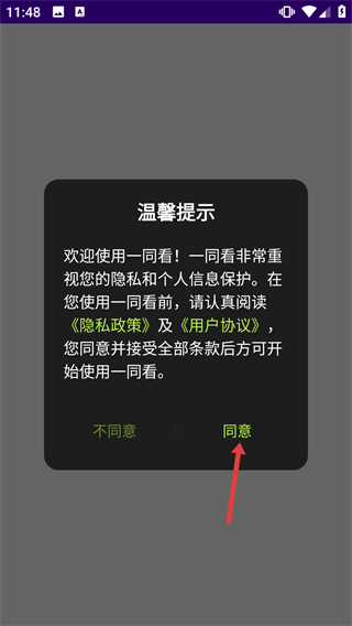 1、在“溫馨提示”彈窗中點(diǎn)擊【同意】,進(jìn)入應(yīng)用主界面。