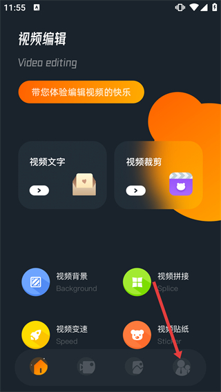 2、在視頻編輯頁(yè)面點(diǎn)擊底部個(gè)人中心圖標(biāo),進(jìn)入個(gè)人中心頁(yè)面。