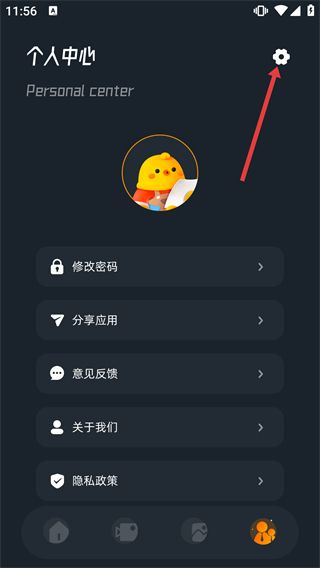 3、在個(gè)人中心頁(yè)面點(diǎn)擊右上角設(shè)置圖標(biāo),進(jìn)入設(shè)置頁(yè)面。