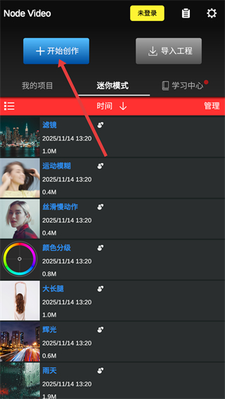 1、點擊【開始創(chuàng)作】,進入項目編輯頁面,可進行項目設(shè)置等操作。