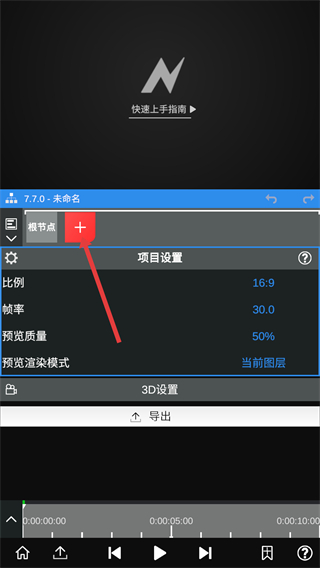2、在項目編輯頁面點擊紅色【+】號,進入新建圖層選項列表。