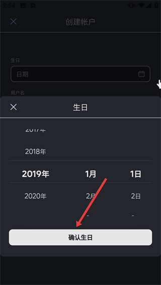 2、選擇生日日期后,點擊【確認生日】,進入賬戶信息填寫頁面。