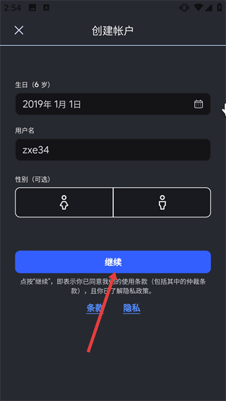 4、完成信息填寫后,點擊【繼續(xù)】,完成Roblox賬戶創(chuàng)建流程。