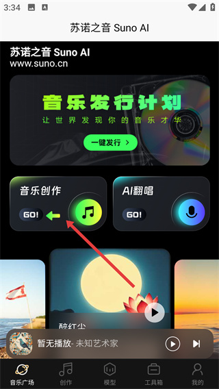 1、在APP首頁點(diǎn)擊【音樂創(chuàng)作】,進(jìn)入文生音樂創(chuàng)作頁面。