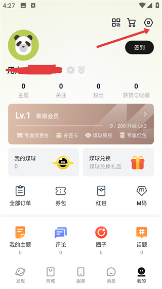 2、在個(gè)人中心頁(yè)面點(diǎn)擊右上角設(shè)置圖標(biāo),進(jìn)入設(shè)置頁(yè)面。