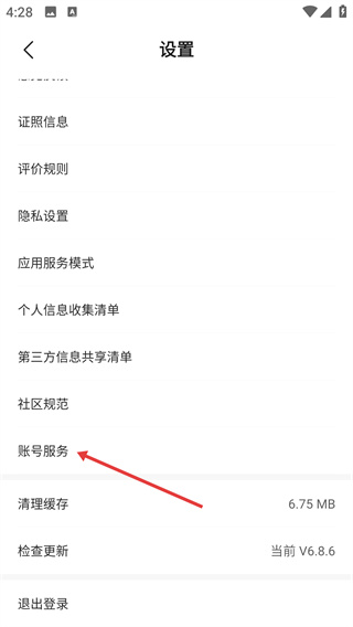 3、在設(shè)置頁(yè)面點(diǎn)擊【賬號(hào)服務(wù)】,進(jìn)入賬號(hào)服務(wù)說(shuō)明頁(yè)面。