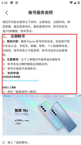 4、在賬號(hào)服務(wù)說(shuō)明頁(yè)面,查看【注銷賬號(hào)】的服務(wù)內(nèi)容、注意事項(xiàng)及申請(qǐng)方式,按指引操作即可。