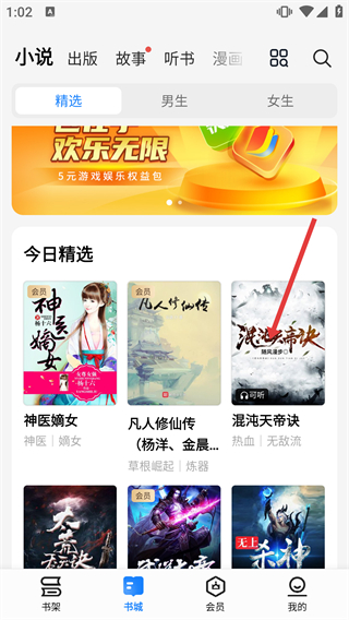 1、打開小說APP書城頁面,找到《混沌天帝訣》書籍,點擊進入詳情頁。