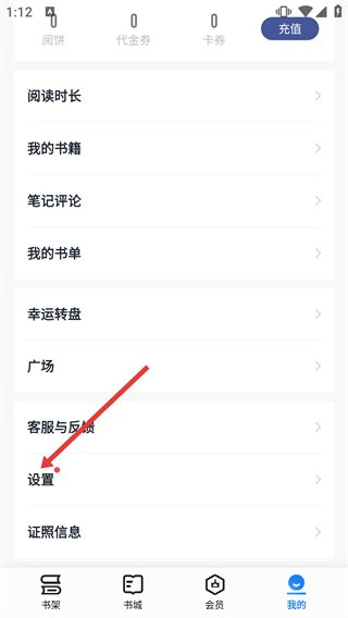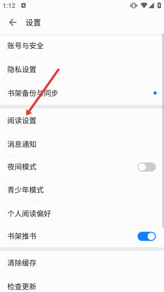 2、在設(shè)置界面,點(diǎn)擊【閱讀設(shè)置】,進(jìn)入閱讀設(shè)置頁面。