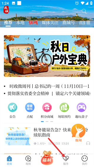 1、在鹿城APP首頁(yè),點(diǎn)擊底部【服務(wù)】選項(xiàng)。