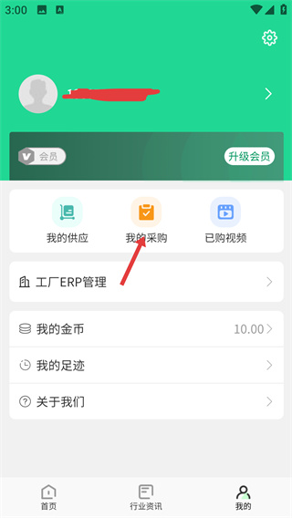 2、在個人中心頁面,點擊【我的采購】選項,進入發(fā)布中的采購頁面。