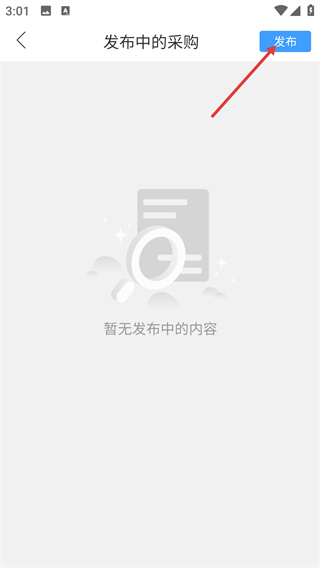 3、在發(fā)布中的采購頁面,點擊右上角【發(fā)布】按鈕,進入采購發(fā)布編輯頁面。