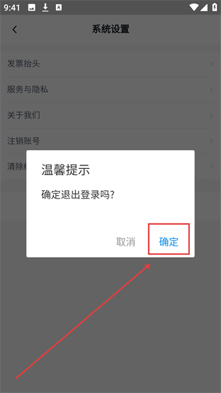 3、在系統(tǒng)設(shè)置界面點擊【退出登錄】,觸發(fā)退出登錄的確認(rèn)提示框哦。