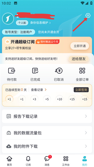 2、在【我的】頁面,找到右上角設(shè)置圖標(biāo),點擊進(jìn)入設(shè)置界面。