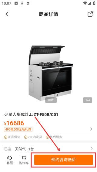 3、在商品詳情頁點擊【預(yù)約咨詢低價】,觸發(fā)免費預(yù)約的彈窗界面哦。