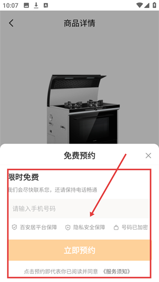 4、在免費預(yù)約彈窗輸入手機號碼,點擊【立即預(yù)約】,即可申請咨詢商品低價啦。