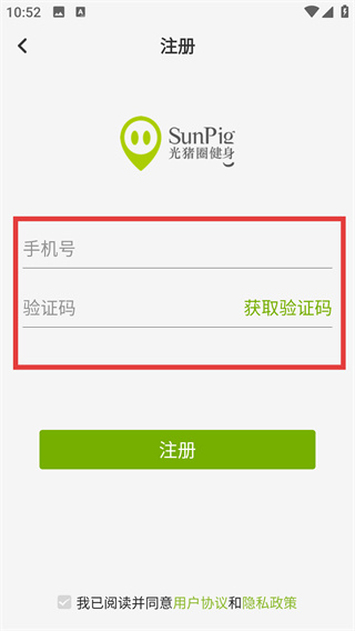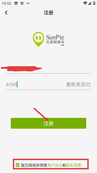 1、在光豬圈健身登錄頁面點擊【立即注冊】,可進入注冊流程。