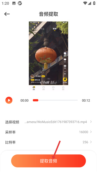 4、在音頻提取設(shè)置頁點擊【提取音頻】,即可從選中視頻中提取音頻。