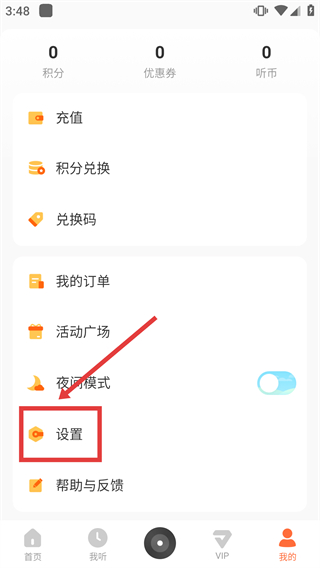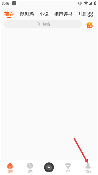 1、在酷我暢聽首頁底部點(diǎn)擊【我的】按鈕,進(jìn)入個(gè)人中心頁面,可查看積分、充值等功能入口。