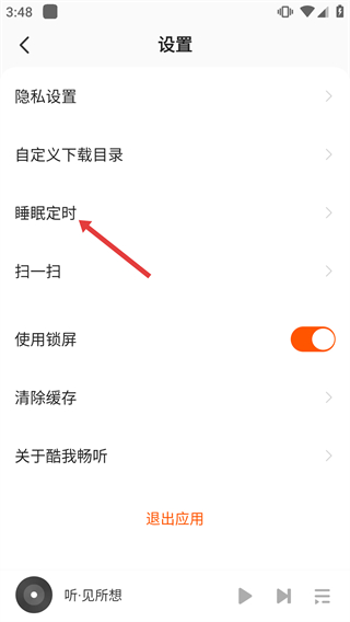 3、在設(shè)置界面中選擇【睡眠定時(shí)】選項(xiàng),進(jìn)入睡眠定時(shí)設(shè)置頁面,該功能用于實(shí)現(xiàn)播放的自動停止,適配睡眠場景等需求。