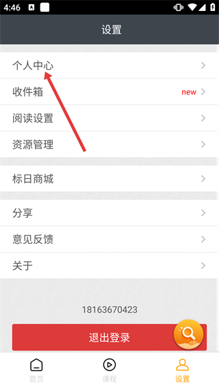 2、在【設(shè)置】界面中,選擇【個(gè)人中心】選項(xiàng)并點(diǎn)擊,進(jìn)入賬號(hào)相關(guān)的信息管理頁面。