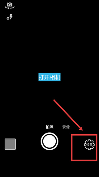 1、在相機(jī)拍攝界面點(diǎn)擊右下角的【設(shè)置】按鈕,進(jìn)入相機(jī)的設(shè)置頁面。