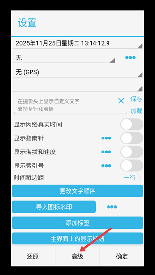 2、在相機(jī)設(shè)置頁面點(diǎn)擊底部的【高級】選項(xiàng),進(jìn)入高級設(shè)置界面。
