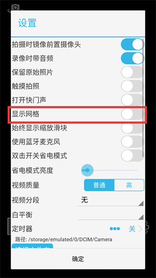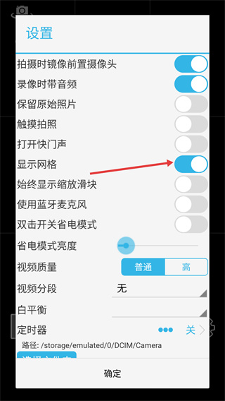 4、點(diǎn)擊【顯示網(wǎng)格】對應(yīng)的功能開關(guān)將其開啟,完成該拍攝輔助功能的設(shè)置,可輔助提升構(gòu)圖效果。