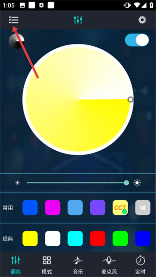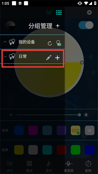 1、在調(diào)色主界面點(diǎn)擊左上角的菜單按鈕,進(jìn)入包含分組管理功能的界面。