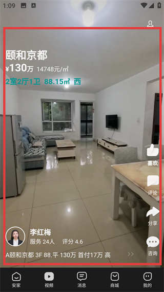 3、瀏覽房源時,可通過【喜歡】功能收藏意向房產(chǎn),也能點擊【咨詢】按鈕聯(lián)系對應(yīng)的房產(chǎn)顧問。