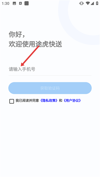 2、進入途虎快送的登錄頁面,點擊“請輸入手機號”對應的輸入框,準備填寫用于登錄的手機號碼。