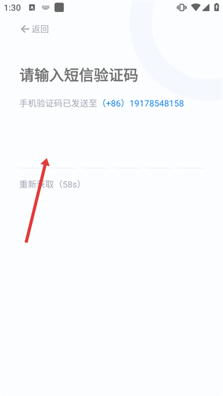 4、進入“請輸入短信驗證碼”頁面,在對應輸入框中填寫收到的驗證碼,完成登錄的驗證步驟。