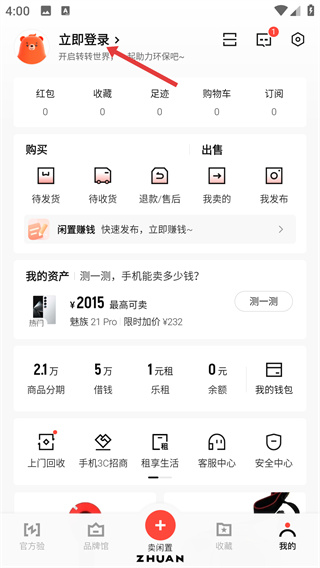 1、在首頁底部點擊【我的】按鈕,進入個人中心頁面,可找到登錄入口,為后續(xù)賬號操作做準備。