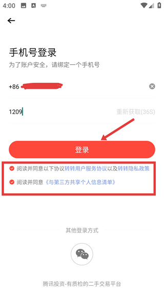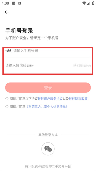 3、在手機號登錄頁面,填寫【+86-請輸入手機號碼】,并獲取、填寫【請輸入短信驗證碼】。