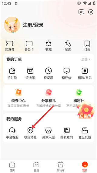 2、在個(gè)人中心的“我的服務(wù)”板塊中,點(diǎn)擊“收貨地址”選項(xiàng),進(jìn)入收貨地址的管理頁面。