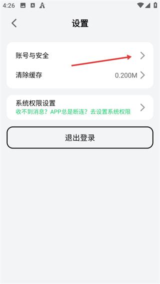 2、在設(shè)置頁面點擊“賬號與安全”選項,進入賬號相關(guān)的安全管理操作頁面。