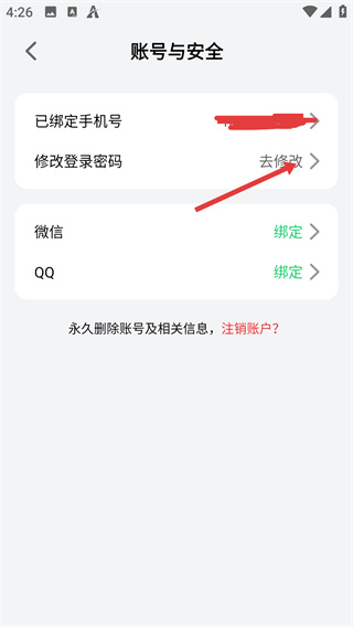3、在賬號與安全頁面,點擊“修改登錄密碼”右側(cè)的“去修改”,進入登錄密碼的修改頁面。