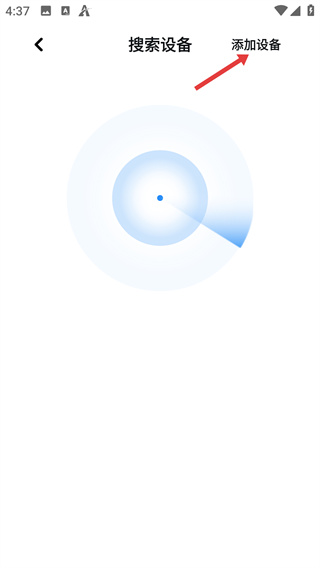 3、在搜索設(shè)備頁面點(diǎn)擊右上角的“添加設(shè)備”選項(xiàng),進(jìn)入音貝奇耳機(jī)型號(hào)的選擇界面。