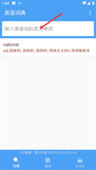 1、在【英語(yǔ)詞典】頁(yè)面點(diǎn)擊【輸入要查詢的英文單詞】搜索框,能激活輸入?yún)^(qū)域,為查詢目標(biāo)英文詞匯做準(zhǔn)備。