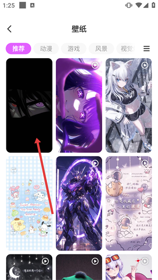 2、進(jìn)入壁紙列表后,選擇目標(biāo)壁紙,點(diǎn)擊進(jìn)入該壁紙的詳情界面。