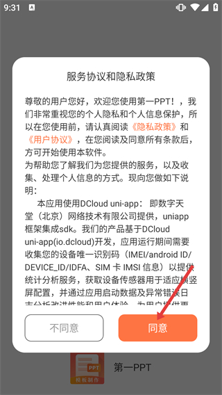 1、打開軟件后會彈出【服務(wù)協(xié)議和隱私政策】彈窗,閱讀相關(guān)條款后點(diǎn)擊【同意】按鈕,即可進(jìn)入軟件主界面使用各類功能。