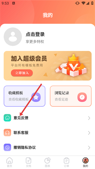 3、在個(gè)人中心頁面,找到【意見反饋】選項(xiàng)并點(diǎn)擊,進(jìn)入用戶反饋的編輯界面,可提交對軟件的建議或問題。