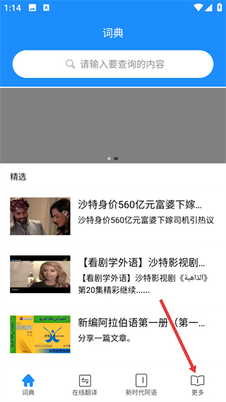 1、在詞典APP首頁,點擊底部導(dǎo)航欄的【更多】選項,進入功能擴展頁面。