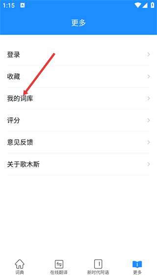2、在更多頁面中,選擇【我的詞庫】選項,進入個人詞庫的管理頁面。
