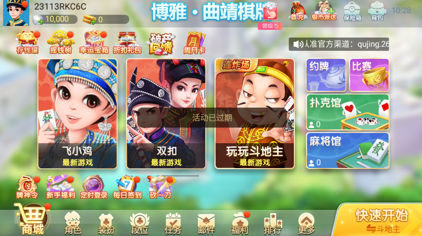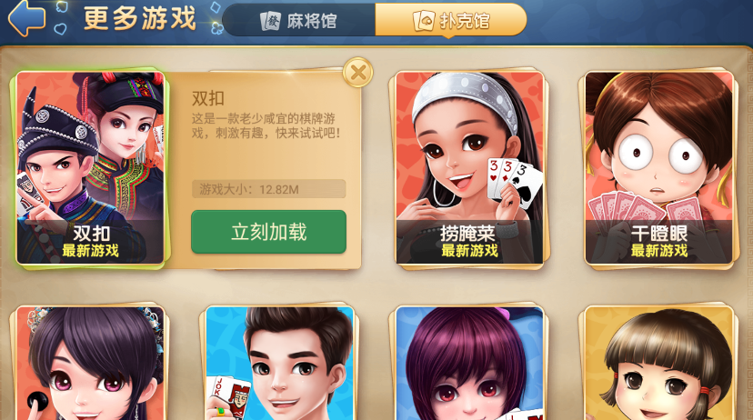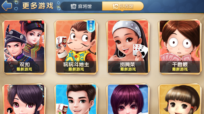 1、打開進(jìn)入游戲大廳,在首頁就能找到雙扣模式,然后點(diǎn)擊右上角的撲克館。