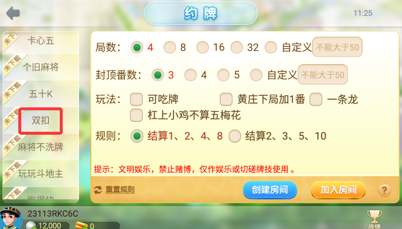 4、補(bǔ)充:可以通過自己創(chuàng)建游戲房間,然后選擇雙扣模式,邀請好友一起玩。